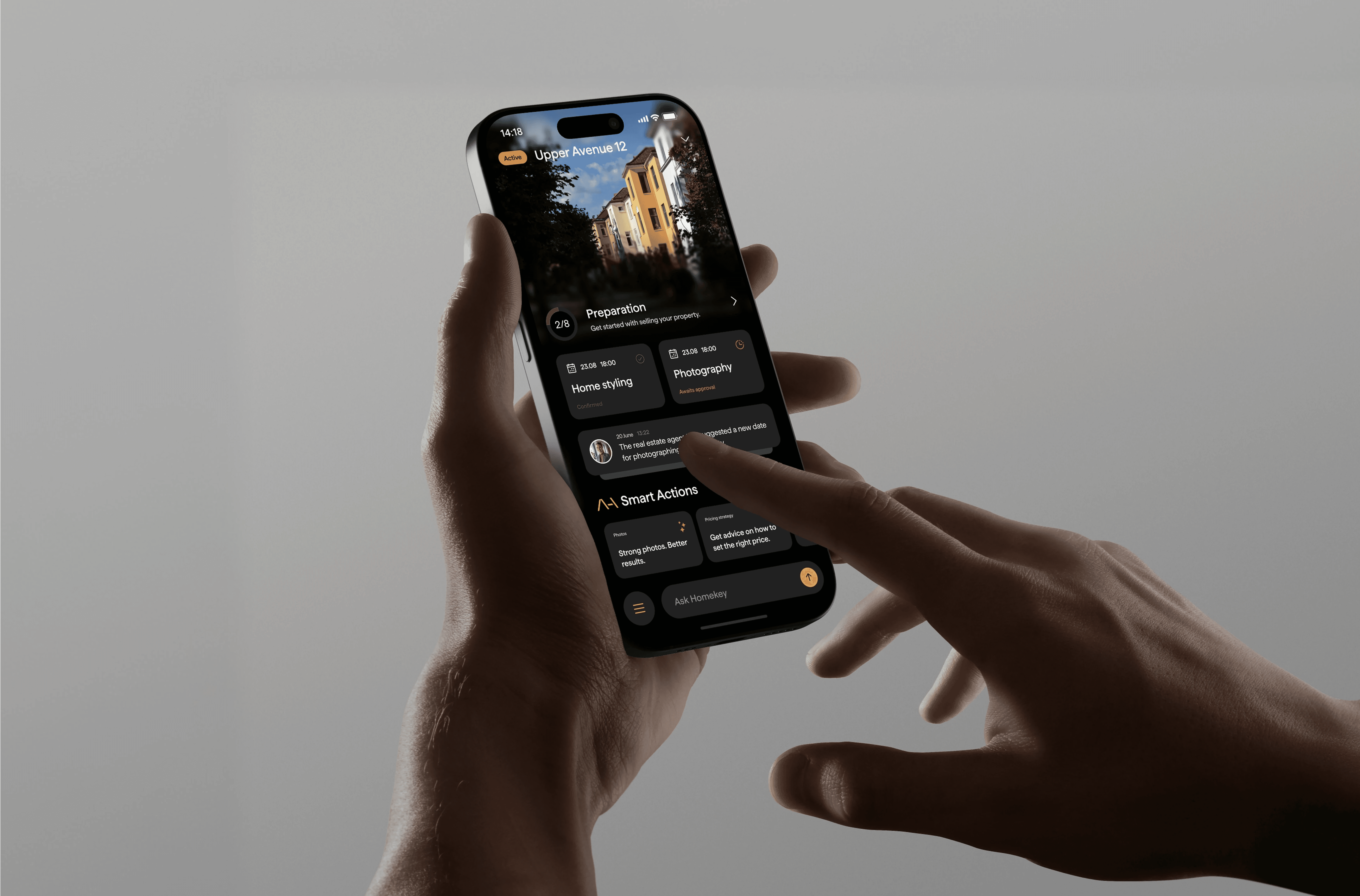 For more complex matters, AI supports the agent with draft replies and prompts for proactive updates ahead of key events. All communication is automatically captured in HomeKey, while agents respond through their preferred channels, including SMS, email, CRM, or directly in the app.